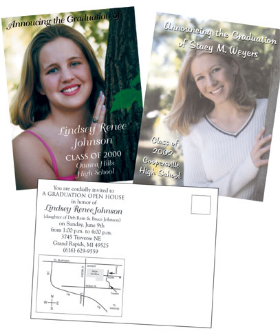 Graduation Postcards are a great way to announce the graduation, as well as invite friends and family to the open house celebration!